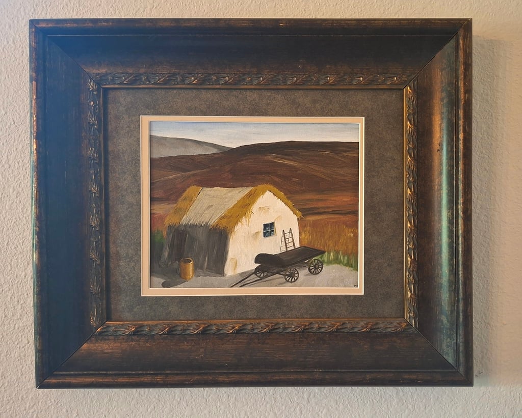 My mother loved Ireland and her heritage there. She took a photo of this lonely farm building on the hillsides of some forgotten town. It hung on the hallway to her bedroom for many years. I knew is was important to her. Its calm and old-world charm resonated with my melancholy spirit.